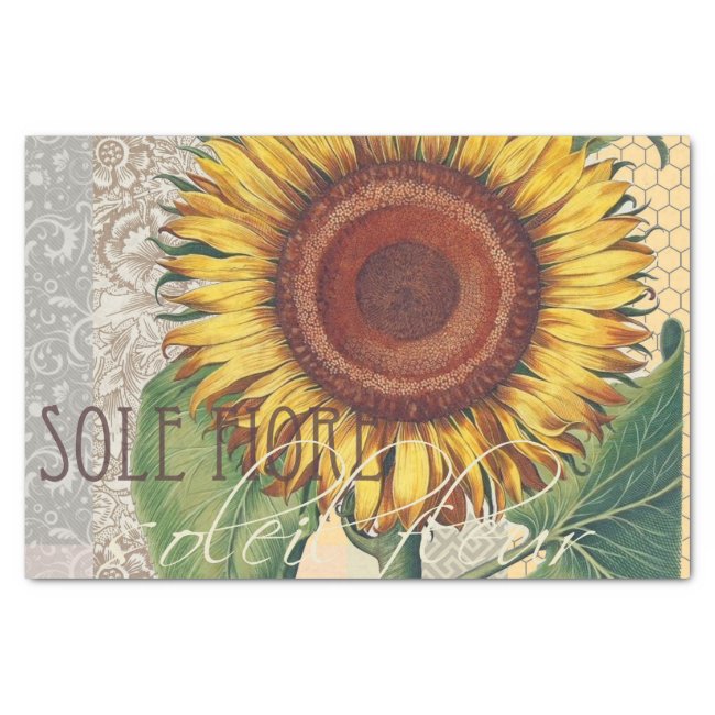 Sunflower Vintage Damask Wallpaper Collage Tissue Paper